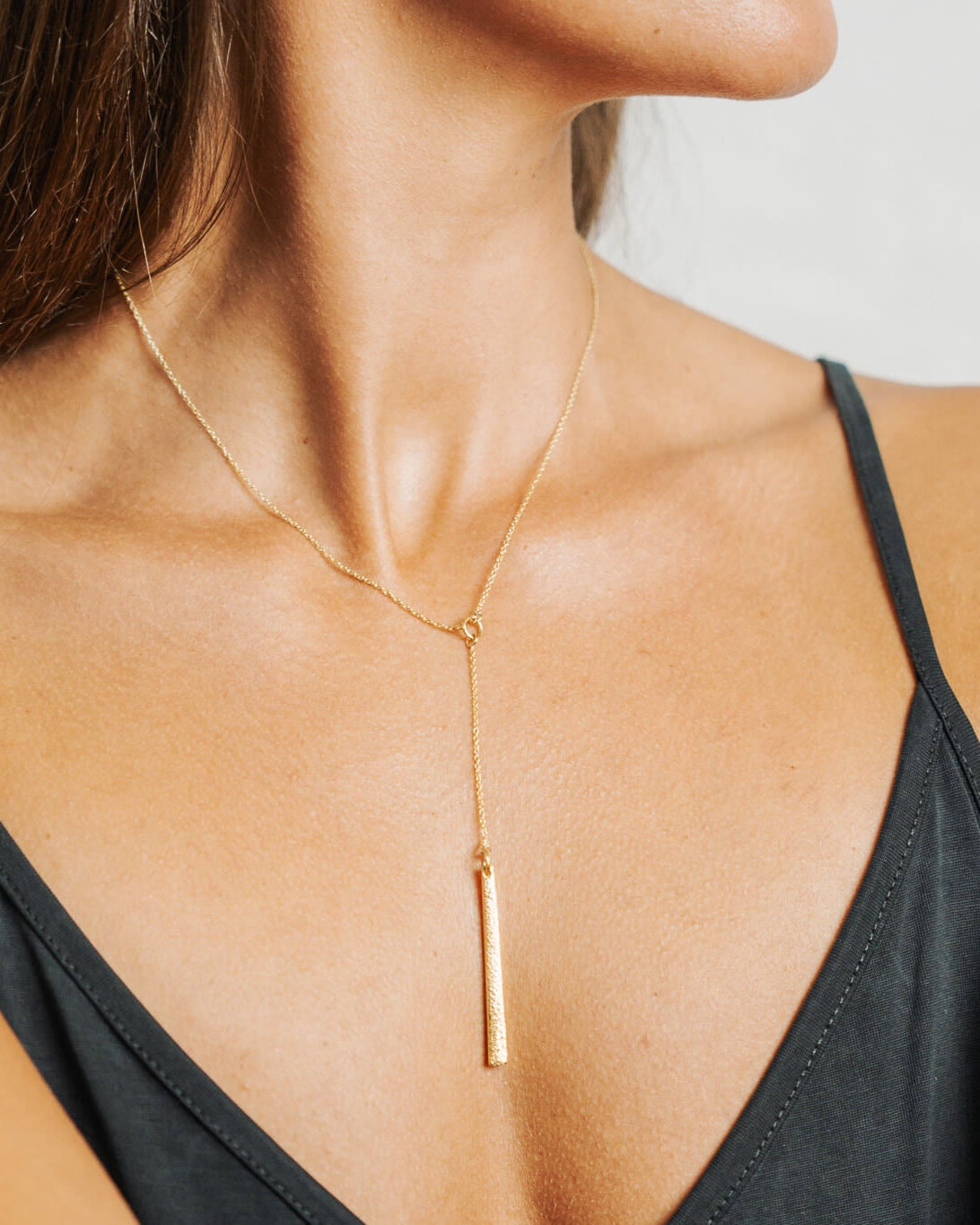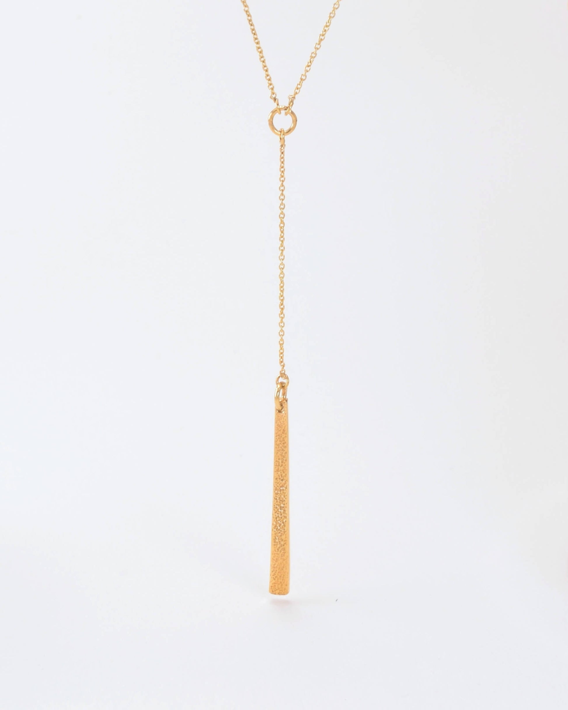 Quadratisch gehämmert und handveredelt: Eine Gabelzinke wird zum Anhänger auf einer Ankerkette. Die Oberfläche zeigt Spuren des Treibhammers, das Stück wird wahlweise mit 24k Gold oder Feinsilber beschichtet. Gefertigt im Münchner Atelier – ruhig im Ausdruck, stark im Detail.