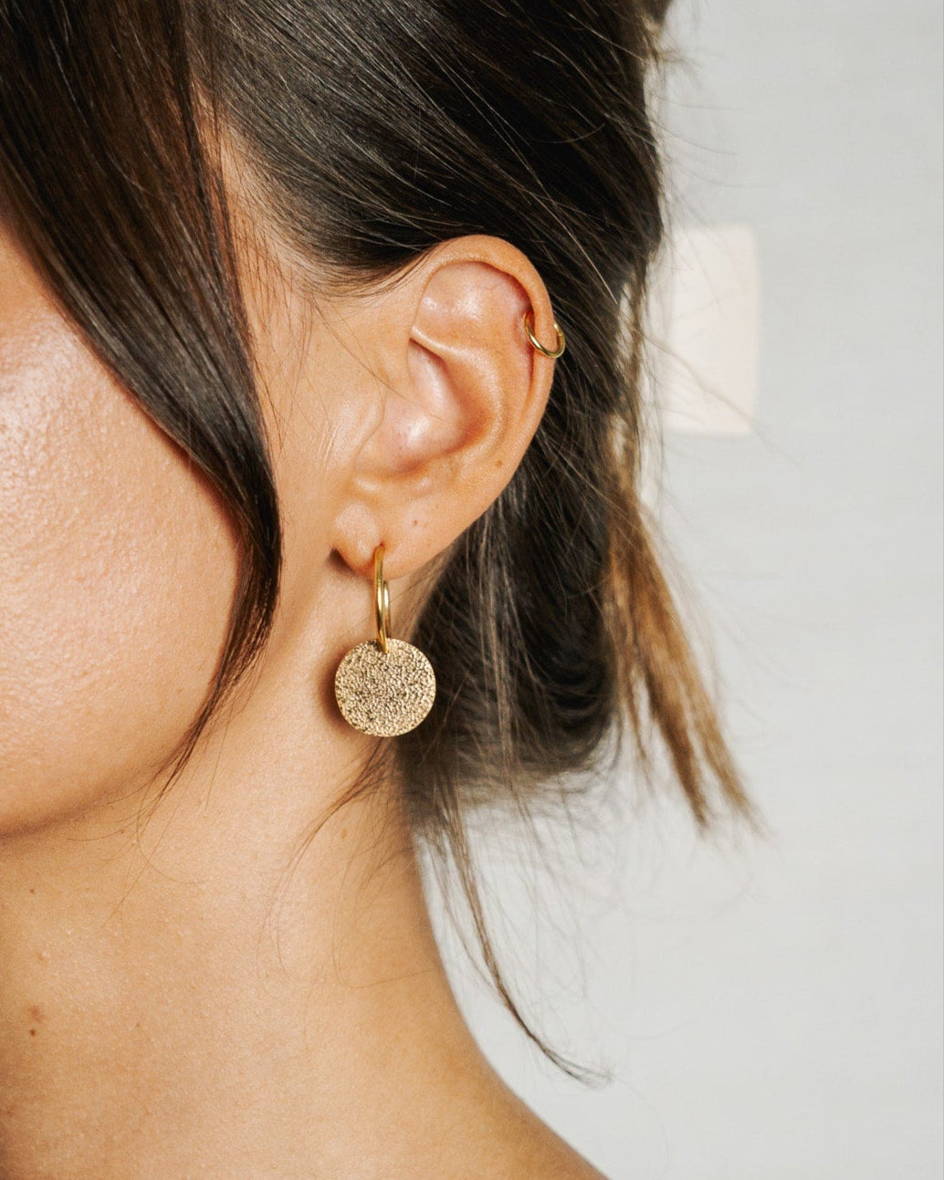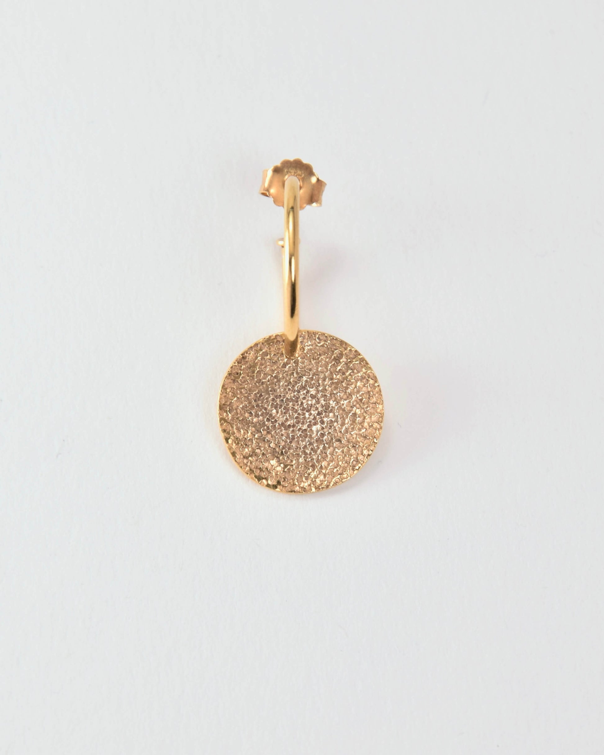 Quadratisch gehämmert und als einzelner Ohrring montiert – gefertigt aus einer historischen Münze, veredelt mit 24 Karat Gold oder Silber. Ein Unikat, handgefertigt in München. Tragbar allein oder im bewussten Mix – für leise Individualität.