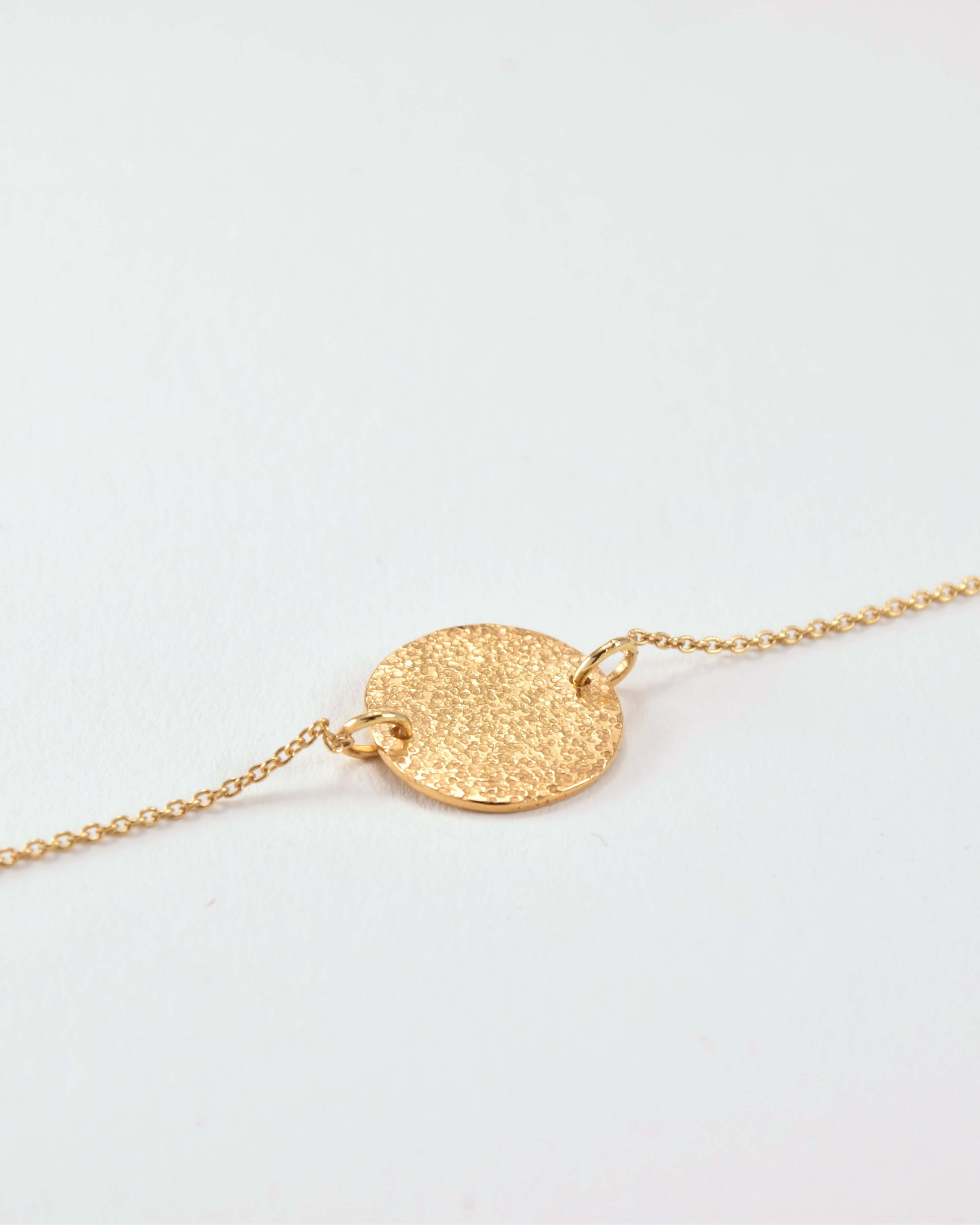 Ein quadratisch gehämmerter Münzanhänger, gefasst zwischen zwei Ankerketten. Die Oberfläche trägt Spuren des Werkzeugs. Jedes Stück entsteht einzeln – gefertigt in München, veredelt mit einer Schicht aus 24 Karat Gold oder kühlem Silber. Für stille Zeichen von Herkunft.