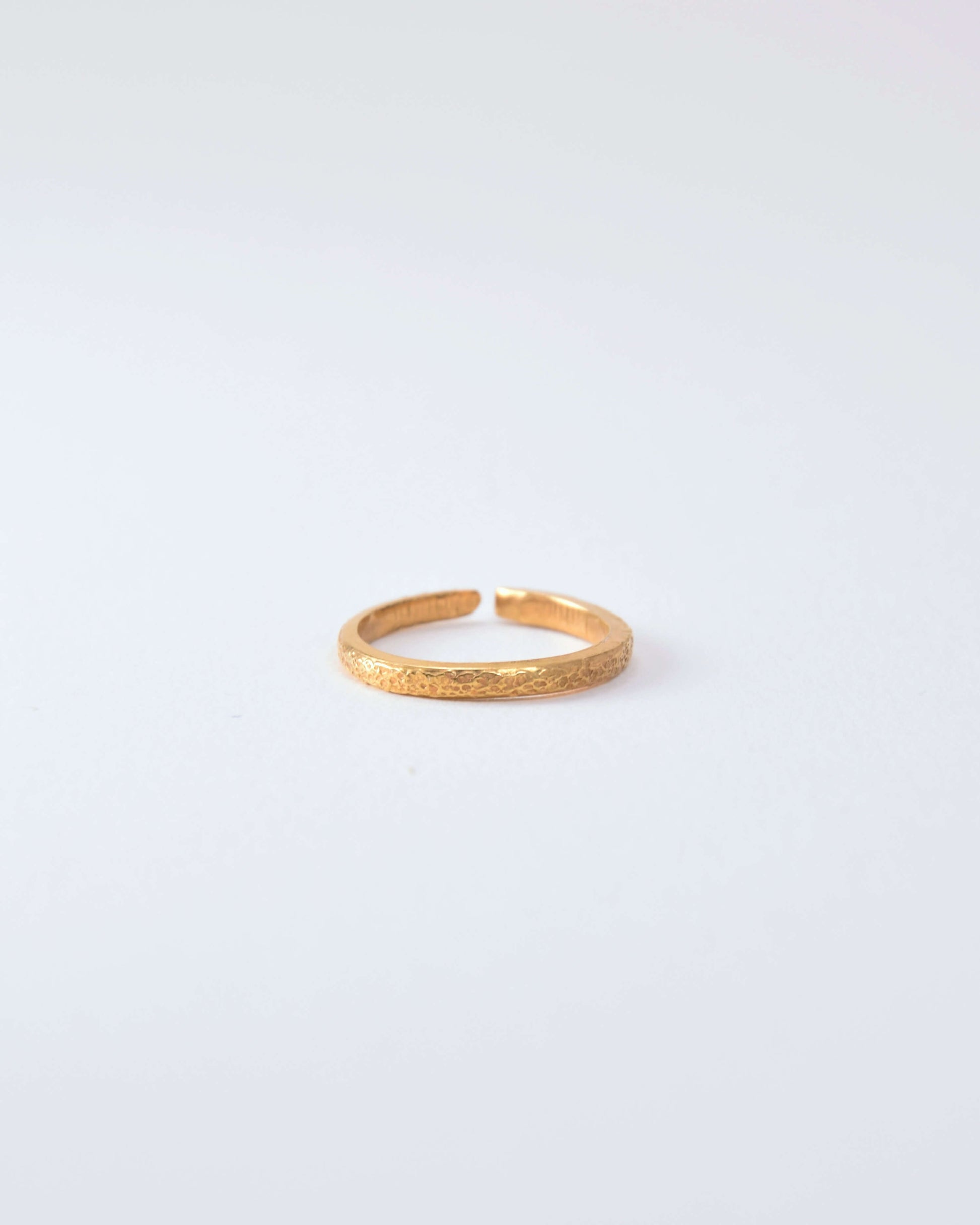 Dieser offene Ring entstand aus einer länglich halbierten Gabelzinke – quadratisch gehämmert, in Form gebracht und beschichtet mit einer Schicht aus 24 Karat Feingold oder feinem Silber. Die Struktur bleibt erhalten, jedes Stück ist ein Unikat – gefertigt von Hand in München.