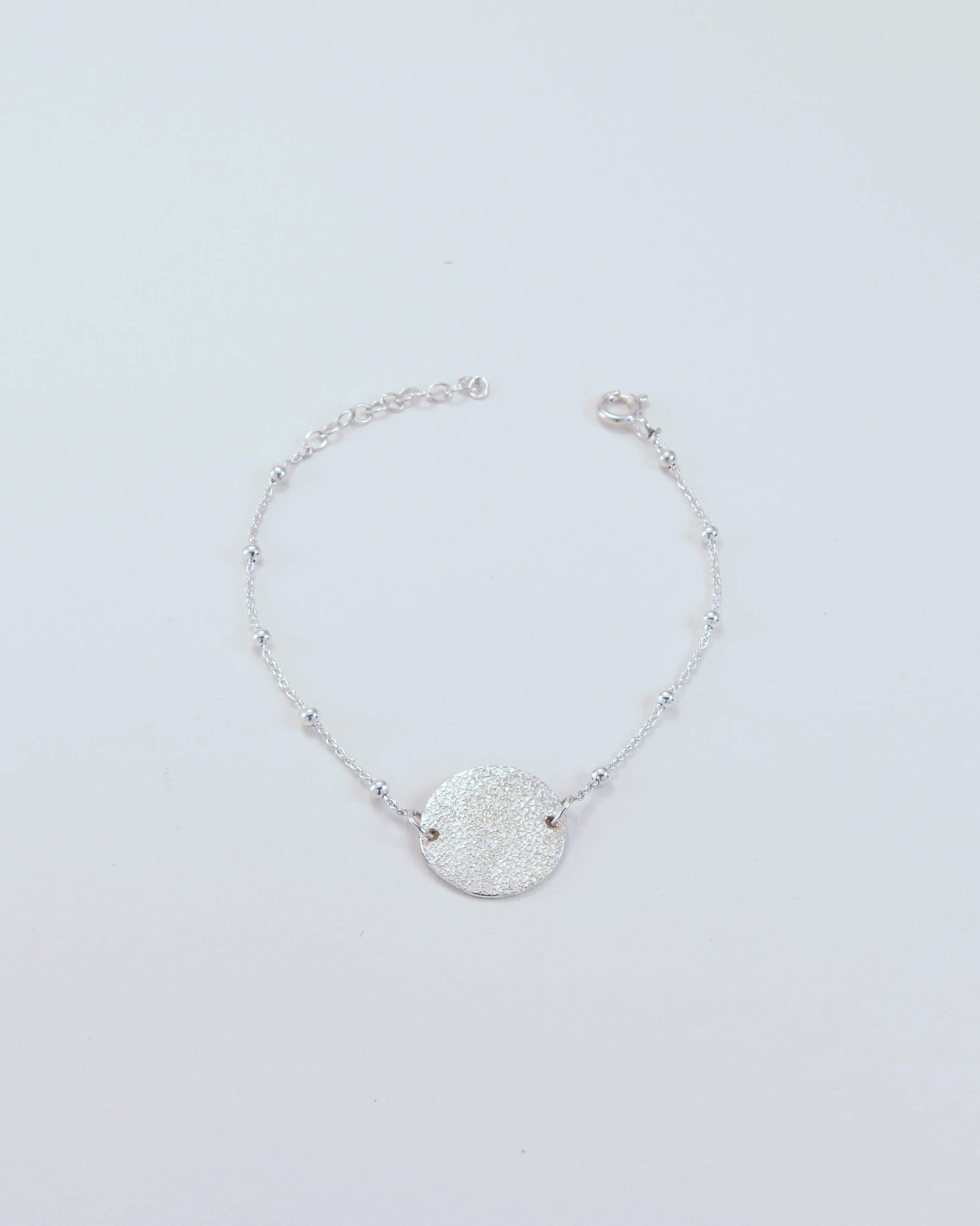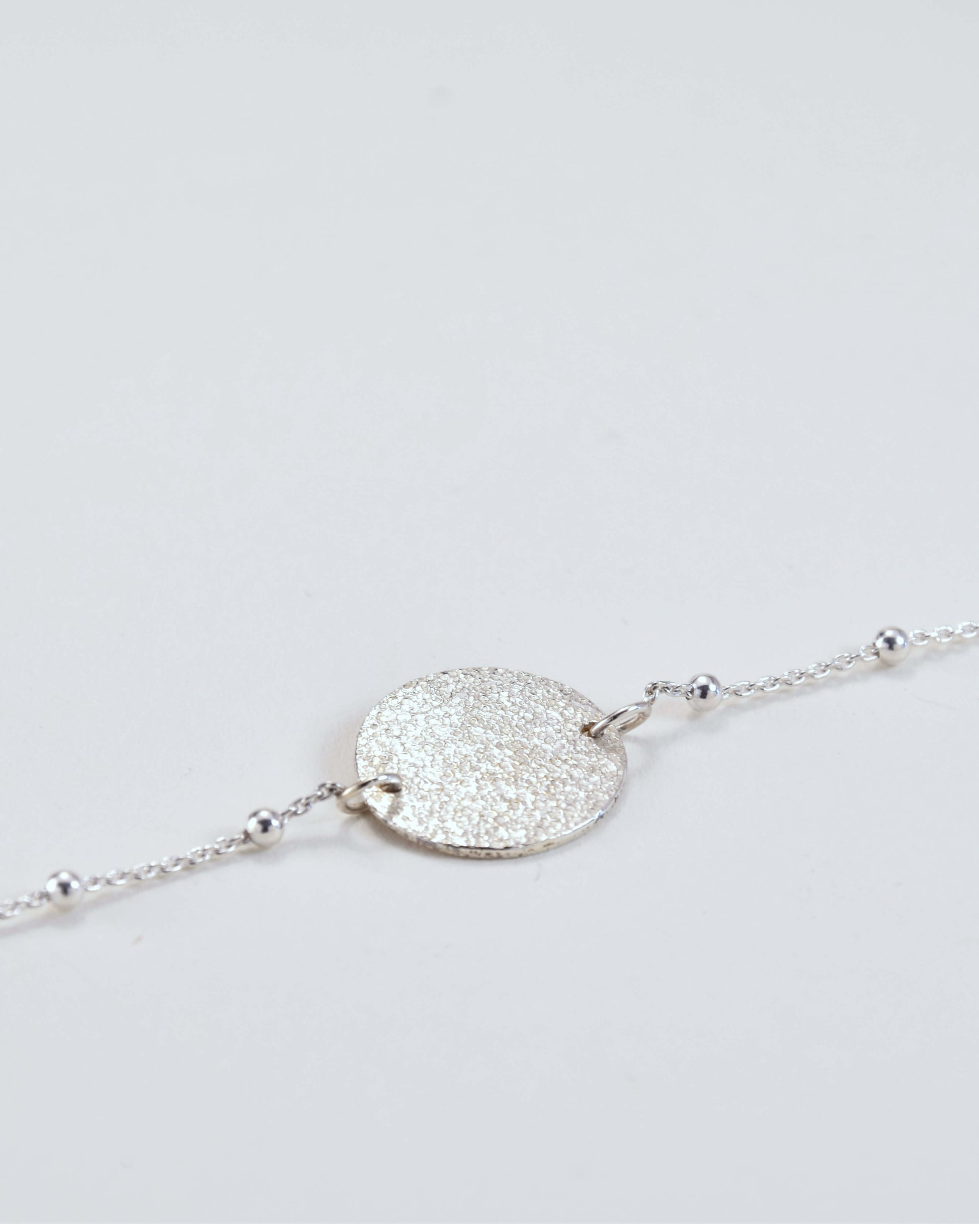 Eine quadratisch gehämmerte Münze bildet das Zentrum dieses Armreifs. Verbunden mit zwei feinen Satellitenketten und versilbert in Deutschland. Die Oberfläche bleibt spürbar handgearbeitet. Hergestellt in München – ein Unikat, das Vergangenheit sichtbar macht.